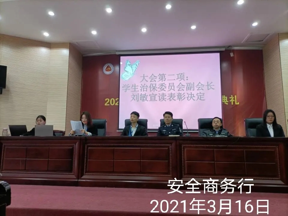 2021年3月16日下午14点我校在办公楼一楼隆重召开了2020年下学期学生治保委员会总结暨表彰大会。