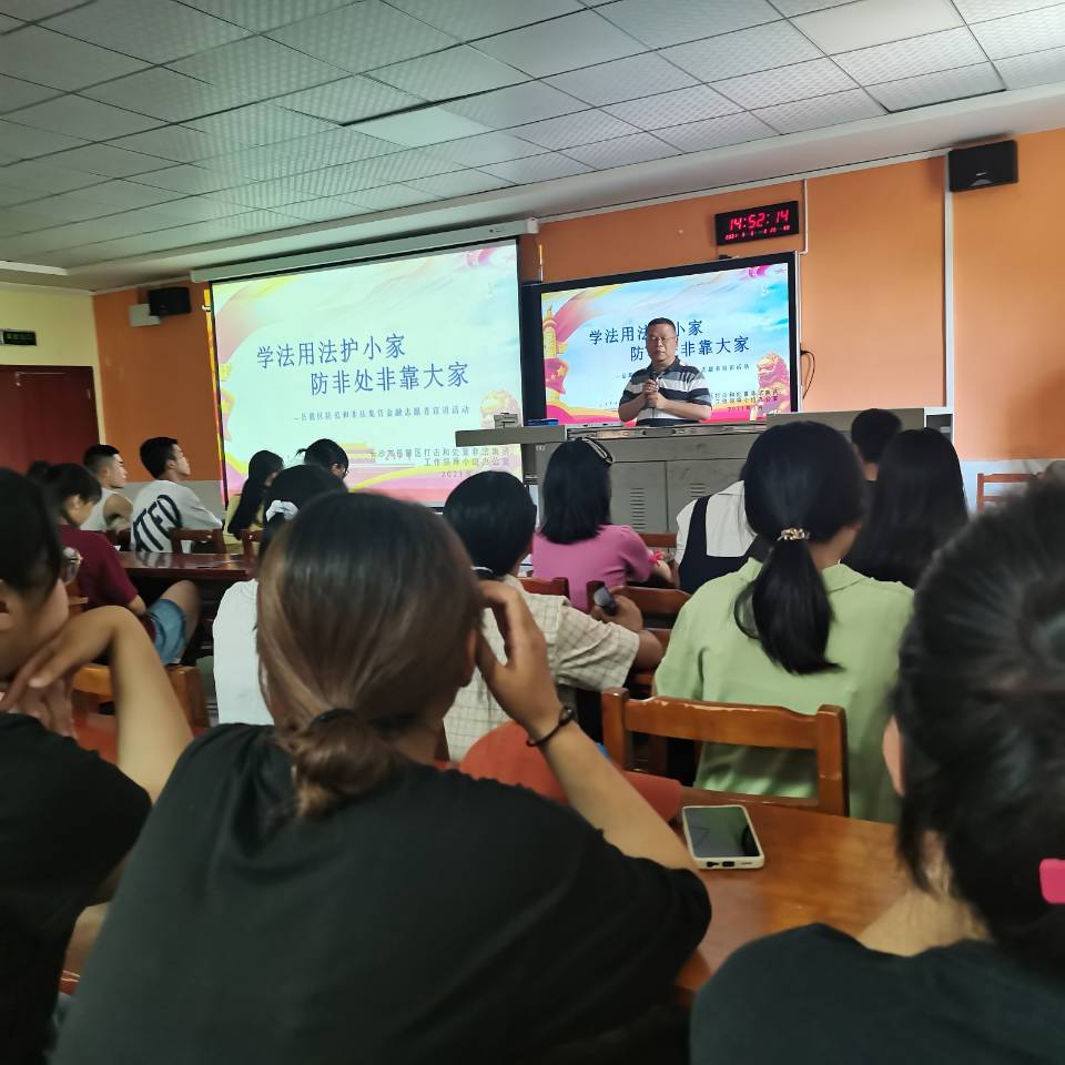 2021年6月8日,街道办志愿者在我校宣传并开展打非讲座,打非全名即“打击非法集资 ”。