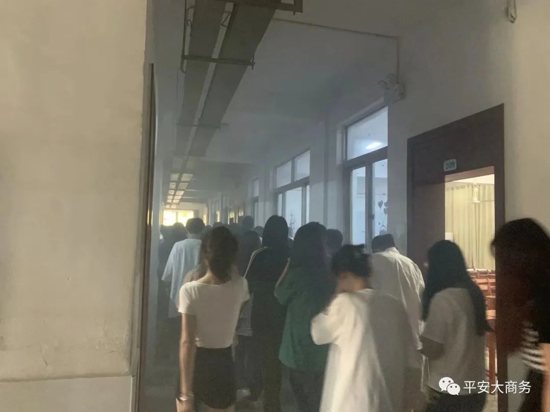 在消防演练开始之前,我校保卫部朱泳霖老师进行应急疏散演练的讲话,讲解了此次演练的目的以及注意事项,然后当警铃响起时,演练正式开始,各班级按照指定的路线,依次下楼。