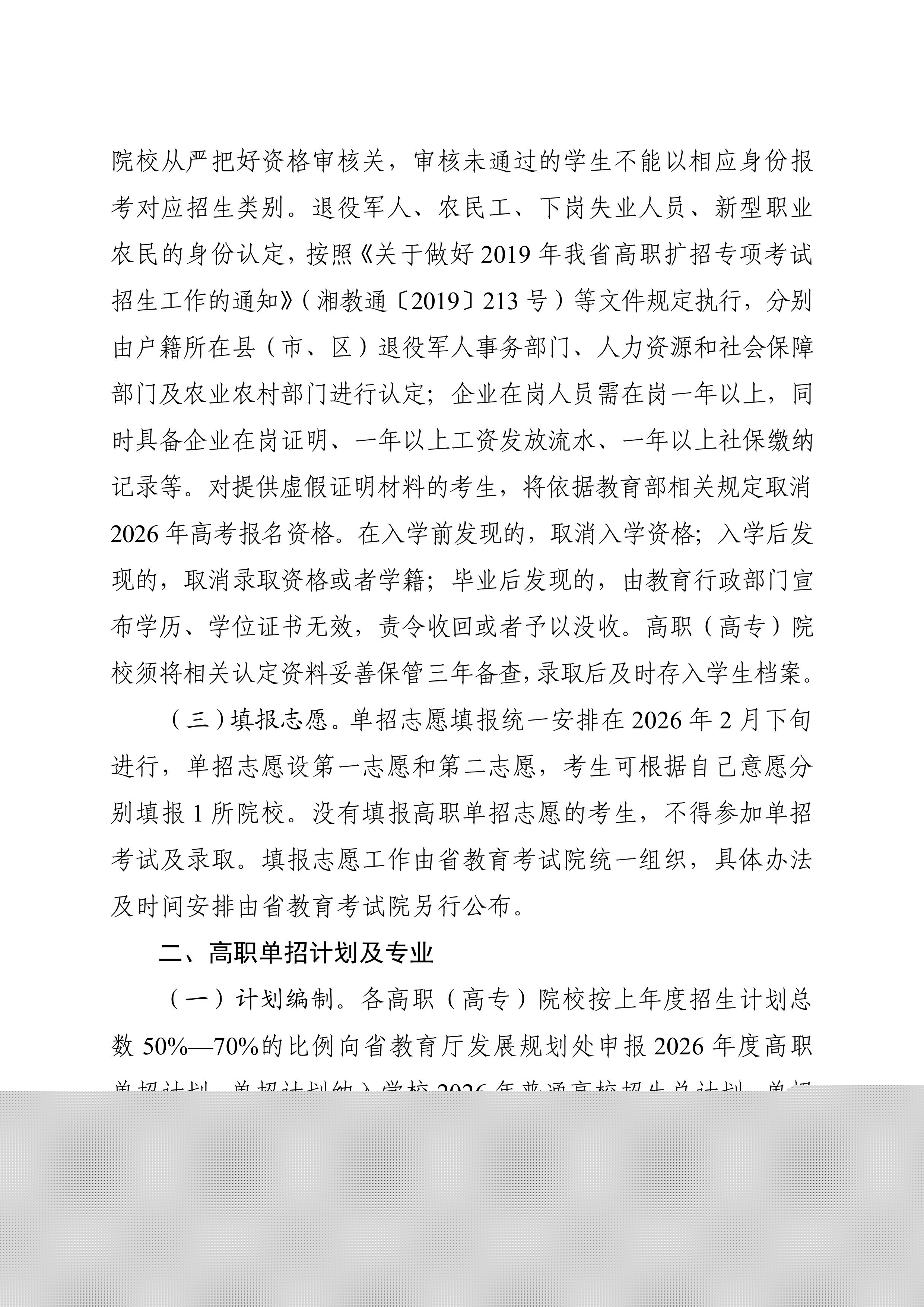 湖南省教育厅关于做好湖南省2026年高职(高专)院校单独招生工作的通知