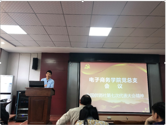 接着,电商学院院长曾鸣带领全体党员学习“全国供销社第七次代表大会精神”,曾院长向各位介绍了此次全国供销社代表大会的会议基本情况及主要内容,并向全体党员介绍了供销社的由来与工作领域,重点介绍了此次全国供销社代表大会提出的“五要”内容。曾院长指出,高校是思想政治工作的重要阵地,大学生特别是大学生党员是接过历史接力棒的主力军,要树立正确的世界观、人生观、价值观,走好人生道路,不负时代重托,不负青春韶华,勤奋学习,为实现第二个百年奋斗目标、实现中华民族伟大复兴的中国梦奉献自己的智慧和力量。