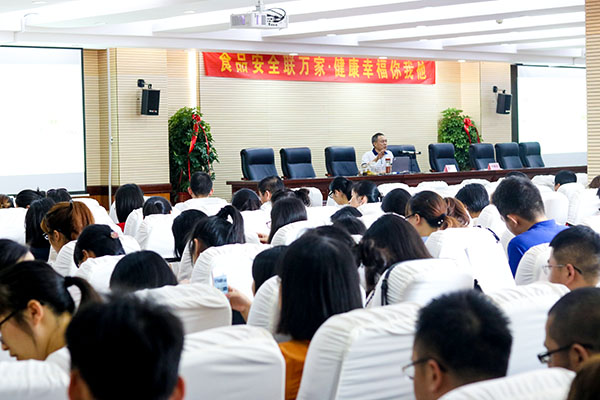 “食品安全联万家,健康幸福你我他”。为贯彻落实习近平总书记在十九大报告中提出的“实施健康中国战略”,提升学院广大职工的幸福生活指数,5月29日下午2:30,学院工会在办公楼六楼职工会议室举办了《创建食品安全示范城市 打造家庭健康厨房》的健康养生知识讲座。讲座由学院纪委书记、工会主席林国安主持,中华人民共和国农业部农产品市场流通专家、湖南省油茶产业协会副会长、湖南省质量安全技术协会常务理事、长沙红星康御茶油科研所副所长张平灿主讲,学院近400名职工听取了讲座。