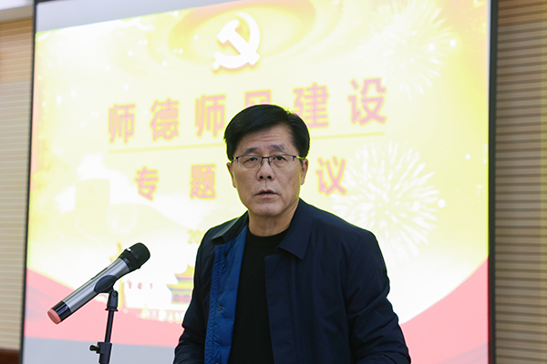 会上,党委副书记吕逢铬带领全体教职员工共同学习了《新时代高校教师职业行为十项准则》。“这十项准则既有对每位高校教师的高线要求,也有底线要求。” 吕逢铬说。针对下一阶段如何加强师德师风建设,我校专门下发了《关于进一步推进师德师风建设的工作措施》。吕逢铬希望全体教职员工会后做好这两个文件的学习、贯彻工作。