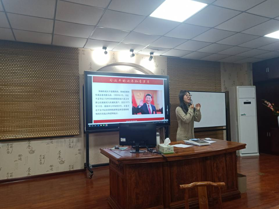 首先由罗老师带领同志们学习《习近平的七年知青岁月》书籍中的一些伟大事迹?!断敖降钠吣曛嗨暝隆费∪∠盗蟹锰刚庋桓龆捞厥咏牵ü彩鋈说幕匾?,用真实的历史细节,讲述了习近平总书记当年“苦其心志、劳其筋骨、饿其体肤、空乏其身”的历练故事,再现了习近平总书记知青时期的艰苦生活和成长历程,展示了青年习近平矢志不渝的理想追求、爱国为民的家国情怀、勤奋好学的进取精神、求真务实的良好作风、吃苦耐劳的优秀品质。同志们通过罗老师讲述的一些故事片段,可以深刻地感受到:习近平总书记是在浓郁革命氛围中成长起来的党的领袖,是在艰难环境和曲折经历中成长起来的党的领袖,是在长期实践中成长起来的党的领袖,是在人民群众中成长起来的党的领袖。在场的所有同志都受到了深深的触动。