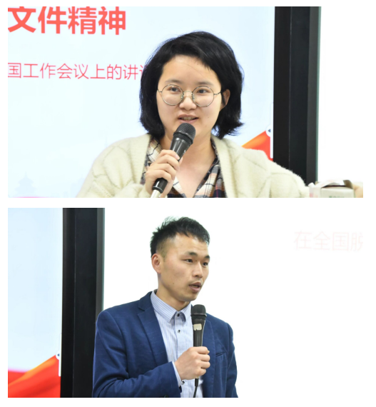 接着,由经济贸易学院学工党支部胡欢老师带着大家领学文件《在全国脱贫攻坚总结表彰大会上的讲话》、经济贸易学院学工党支部莫英老师领学文件《习近平总书记在中央全面依法治国工作会议上的讲话》。其中,胡欢老师呼吁大家:“回首过去,我们在解决困扰中华民族几千年的绝对贫困问题上取得了伟大历史性成就,创造了人类减贫史上的奇迹。展望未来,我们正在为全面建设社会主义现代化国家的历史宏愿而奋斗。征途漫漫,惟有奋斗。如今农村是脱贫了,但是振兴路上更需要人才。如果在座有同学想要去振兴农村,现在可以朝着这个方向努力。”