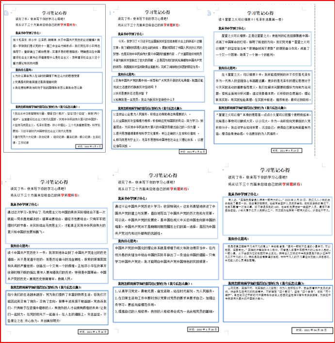 在第十三期活动中,发展对象陈俐安同志学习了《中国共产党简史》,她写到:“ 历史是一面镜子,也是一盏明灯。100年前一批青年才俊用智慧和鲜血开创了红色历史,作为时代青年,我们有责任接过这一棒,继承和发扬优良作风,在建设有中国特色社会主义的伟大征程中勇往直前。”入党积极分子李丹丹同志阅读了《论中国共产党历史》,她认为:“以史为鉴,无论是伟大事业发展还是个人成长,我们都需要?;?lsquo;生于忧患死于安乐’的忧患意识,‘思则有备,备则无患’。前行的道路上面临着无数难以预见的风险挑战需要我们去应对,百年非凡历程中,中国共产党人始终保持着一种重要的品质,就是不断总结经验,提高本领,不断应对风险,迎接挑战以及化险为夷的能力水平,为我们应对内外部复杂情况变化,解决现实困难。”