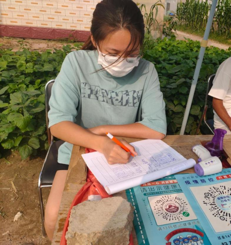 在河北秦皇岛,肖悦迎同学在家乡秦皇岛市昌黎县团林乡牛官营二村参加了一系列的志愿服务工作。她协助当地部门登记来往人员和车辆的信息、检测体温、查看健康码及行程码,及时上报异常情况等。肖悦迎同学说到:“作为一名疫情防控志愿者,我感到责任重大。我时时刻刻都在提醒自己:简单的事情重复做,重复的事情用心做。疫情尚未结束,我将坚守岗位,为乡亲们的安全筑牢防线!”