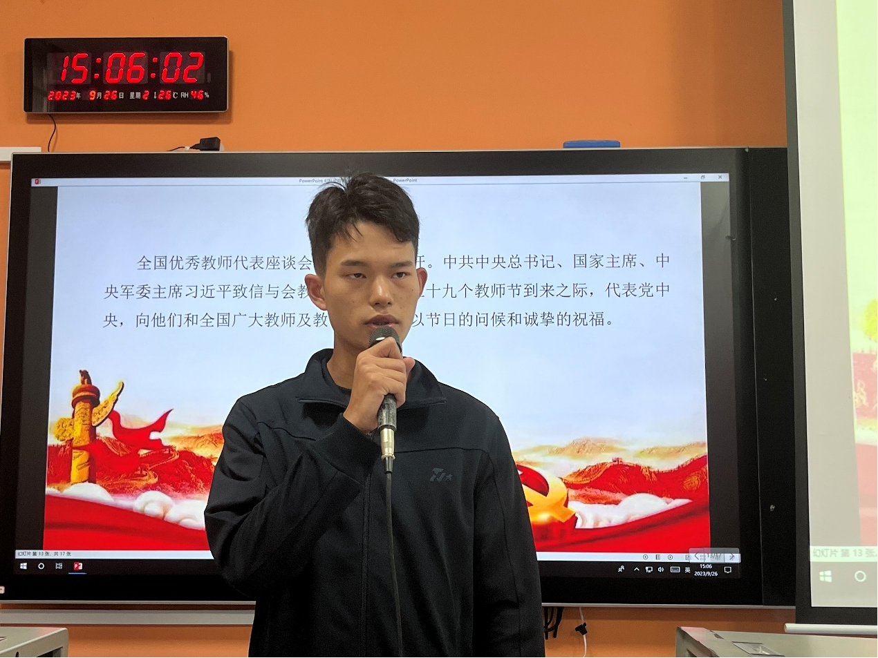 接着,预备党员肖伟同志带领大家学习了文件“习近平致信全国优秀教师代表强调 大力弘扬教育家精神 为强国建设民族复兴伟业作出新的更大贡献”。