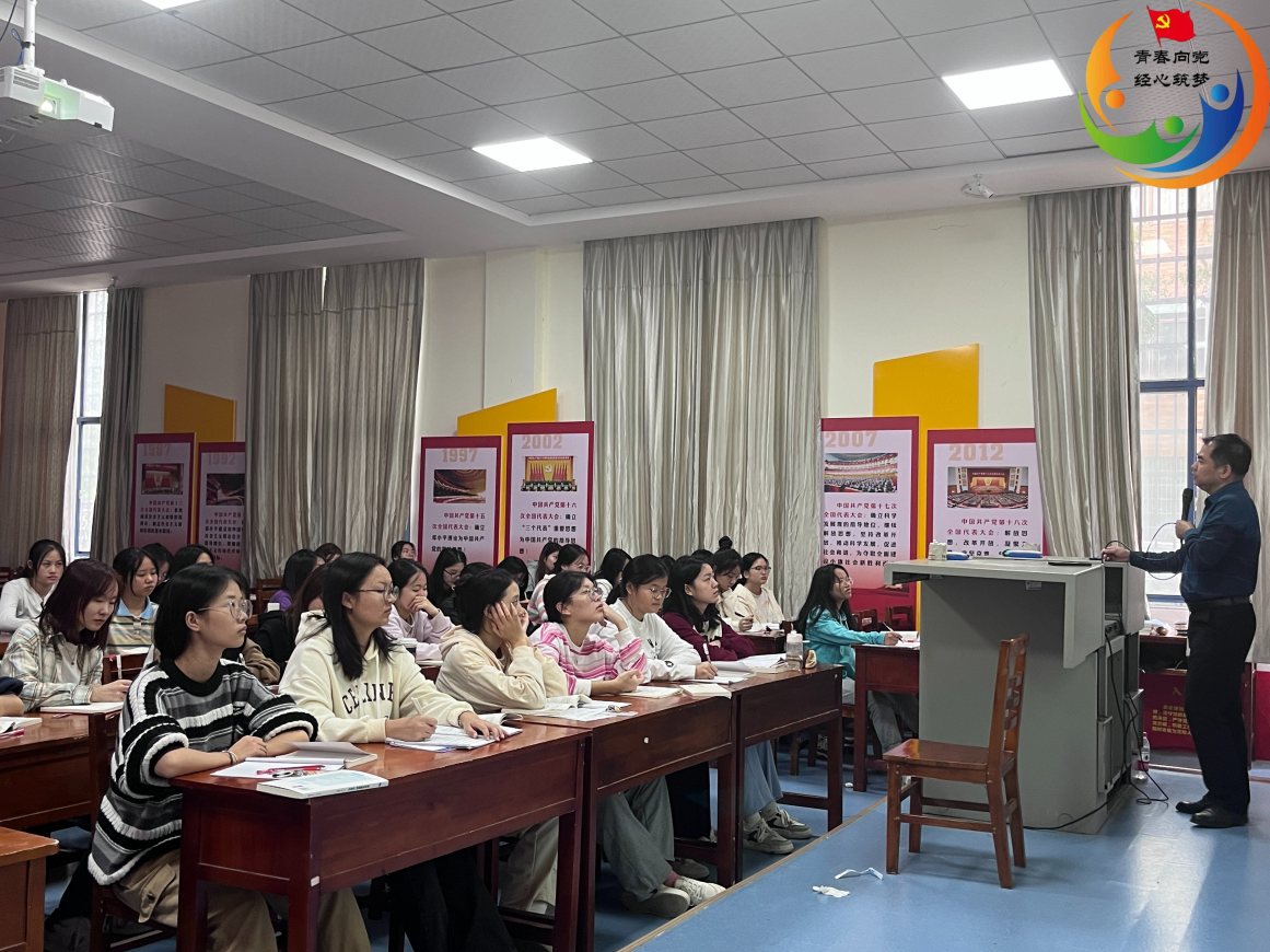 (通讯员 蒋欣雨)2023年10月12日中午12:30,经济贸易学院于博思楼101教室(经济贸易学院分党校)组织开展“学习重要讲话明确党的纲领,为实现共产主义而奋斗”专题党课。本次专题党课由信息学院党总支书记刘灿勋老师主讲,经济贸易学院学工党支部党员、入党积极分子参加学习。