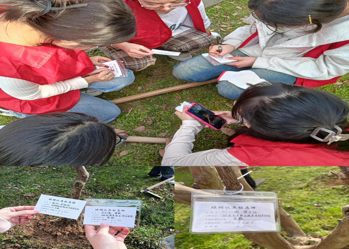 夕阳西下,一天的植树活动也将落下帷幕。虽然汗水浸湿了衣服,泥土弄脏了双手,但每个人的脸上都洋溢着满足和喜悦。他们站在新栽的树苗旁,仿佛看到了这里绿树成荫的景象,心中充满了期待。他们在卡片上虔诚地写下自己的名字,将它挂在自己栽种的树苗上,代表自己认养的一颗颗生命,期望与小树一同茁壮成长。当谈到活动感受时,22级食用菌刘心瑜同学激动地回答:“种下一棵希望树,就是种下了一个绿色的梦。我们会时刻关注这棵树的成长,给它浇水、施肥、修剪,让它茁壮成长。同时,我们不仅要在植树节这一天行动,还要树立和践行绿水青山就是金山银山的理念。”