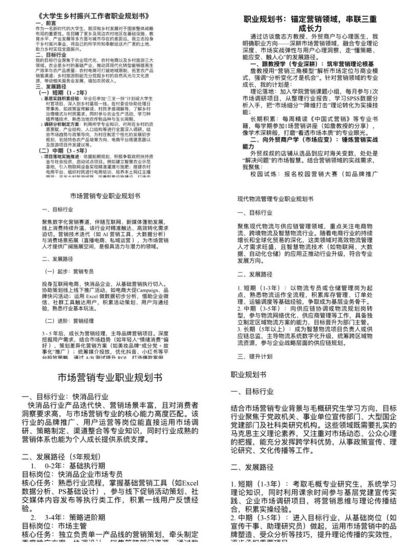 在此基础上,大家结合自身专业制定职业规划。23级市场营销1班包桂萍同学以访谈内容为依据,规划从基础岗位到行业骨干的发展路径,并从学业、技能、实践、人脉四方面提出提升计划。