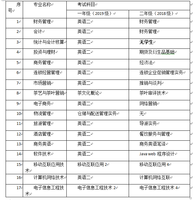 按照成人教育人才培养方案的要求,原则上各助学点应按照年级和专业划分、统一组织对应学期考试课程的期末考试,考试课程由学校组织闭卷考试、统一阅卷。请各站点联系我院领取试卷、组织考试、并于2020年元旦前上交试卷。本次考试成绩将作为毕业考核的条件之一,请各站点高度重视。具体各年级和各专业的考试科目详见下表。具体联系人:周老师,电话:0731-88881099。