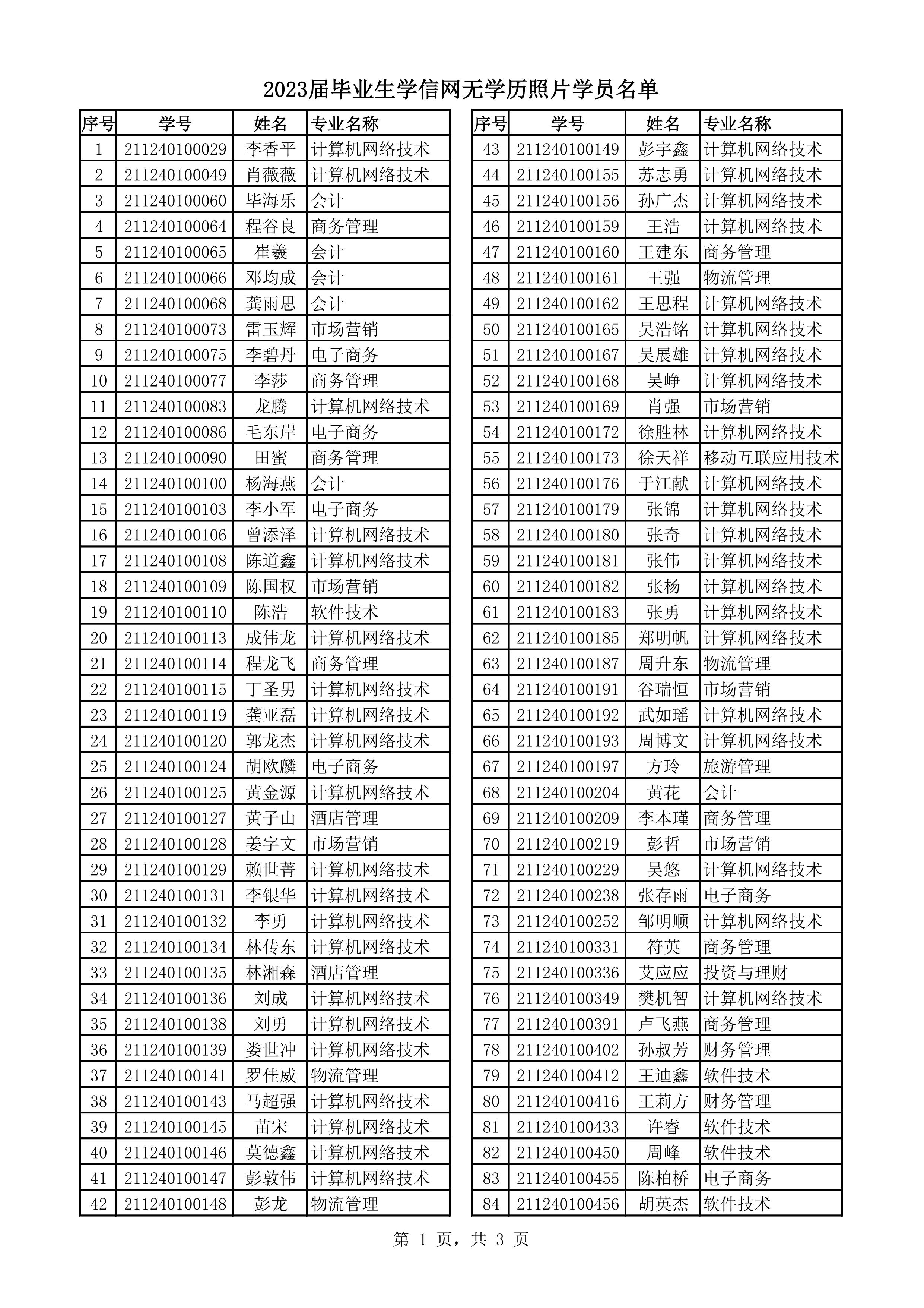 毕业学历照片跟录取照片比对不通过的学员名单