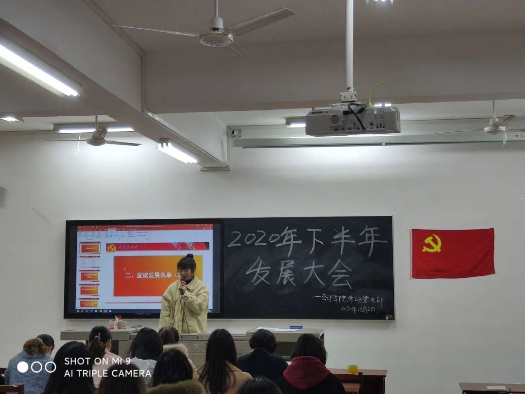 会计学院学工二党支部于2020年12月2日中午12:30在二教301举行2020年下半年新党员发展大会。本次参加会议的共有7名教师党员,27名学生党员。随着铿锵有力,振奋人心的国歌响起,发展大会拉开了序幕。