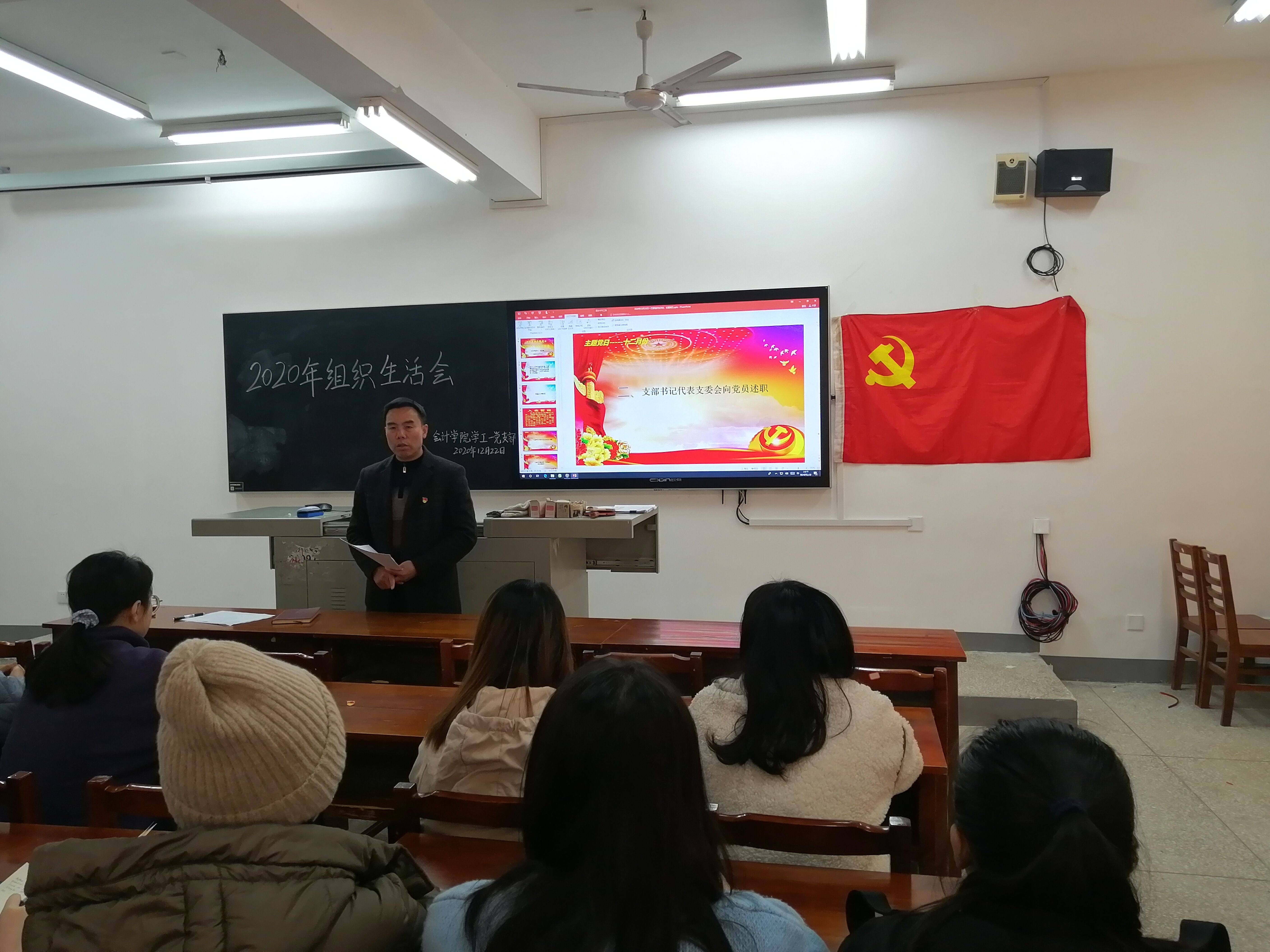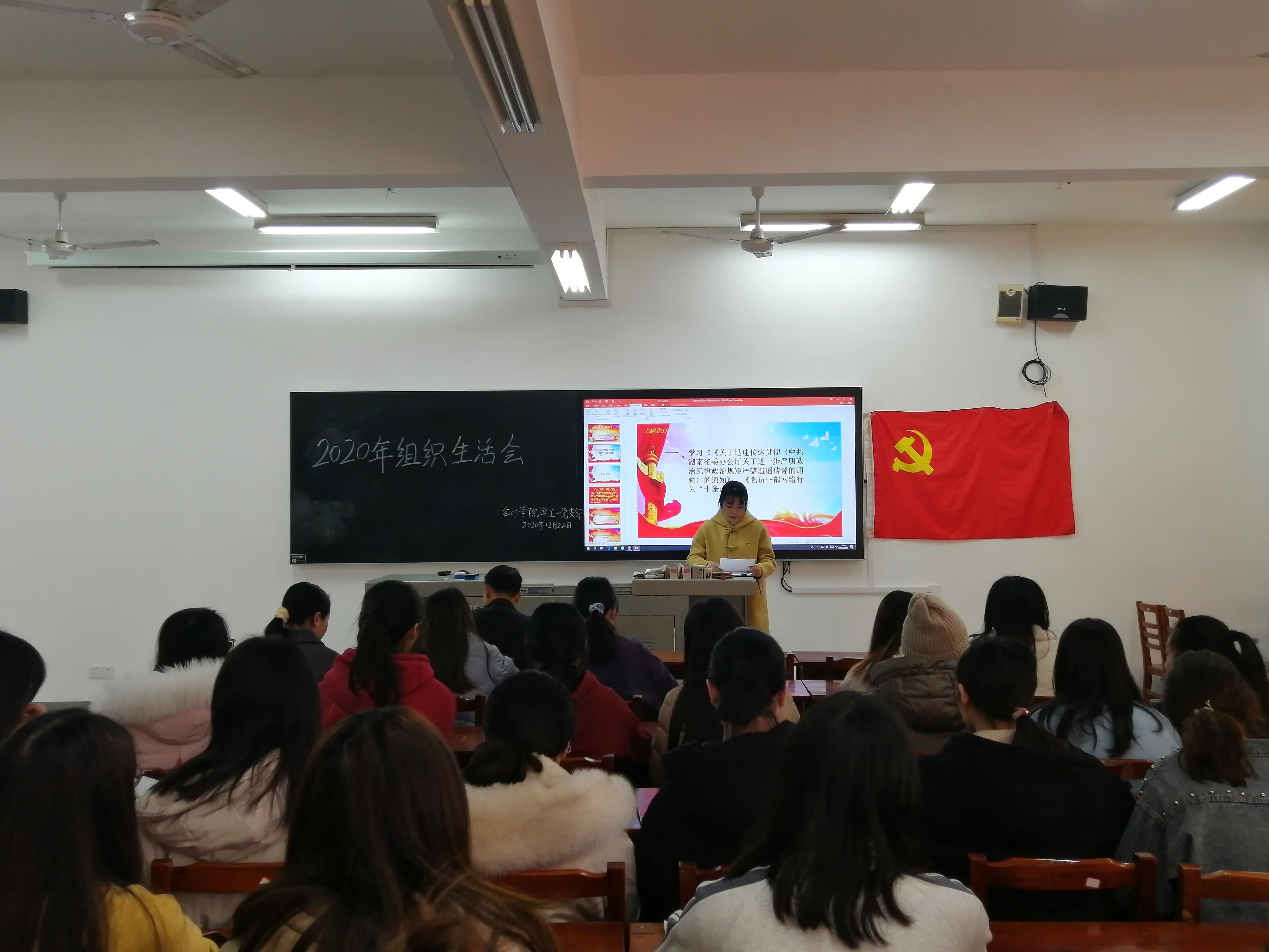 会计学院学工一党支部于2020年12月22日下午2:00在二教310室召开了主题为“严明政治纪律政治规矩,严禁造谣传谣”组织生活会暨12月份主题党日。参加本次会议的为会计学院学工一党支部全体支部人员,其中正式党员9名。