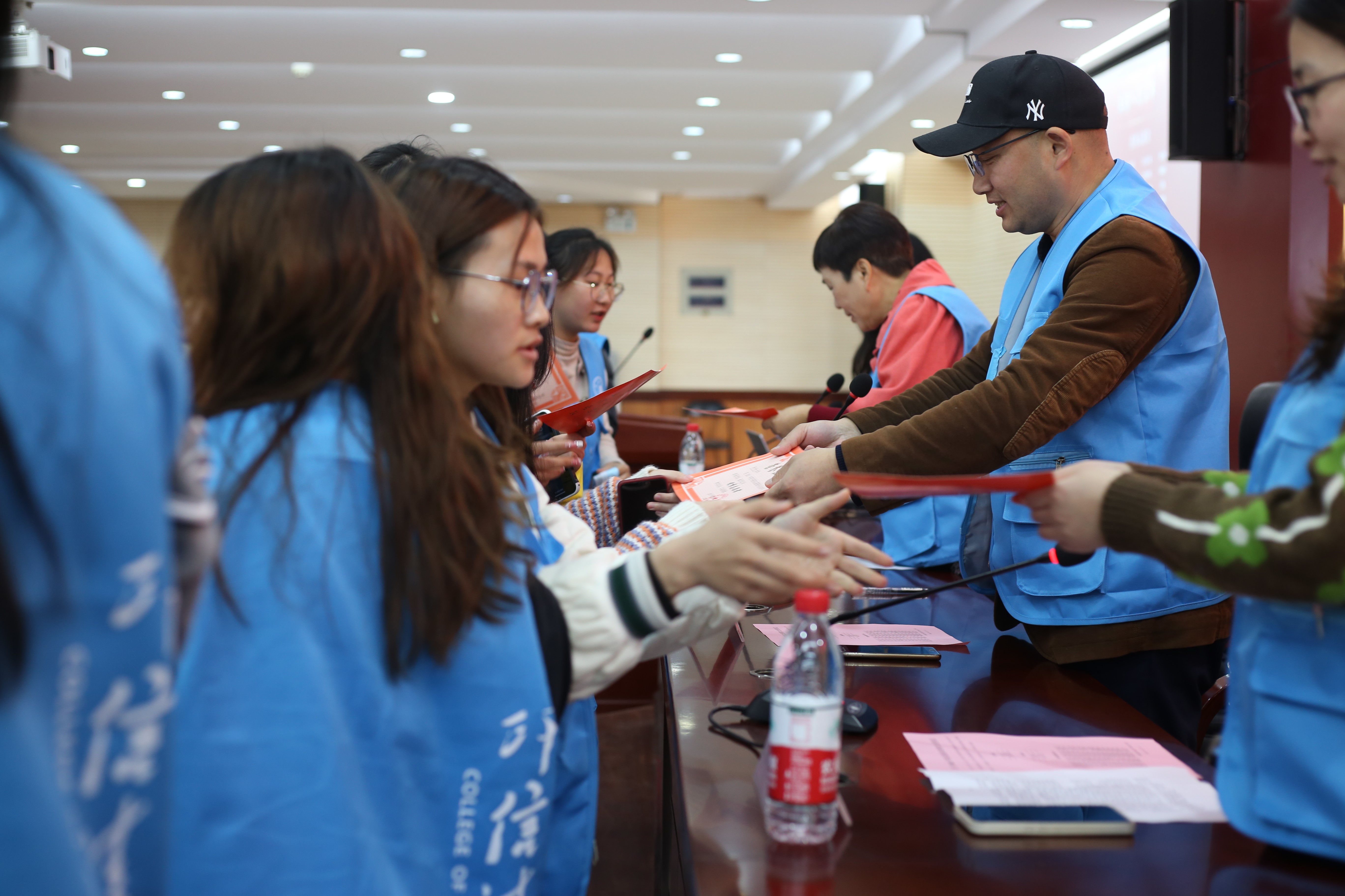 浣晓璐老师首先对志愿者们的无私奉献表示感谢,并希望同学们能够坚守本心,时刻保持激情,以脚踏实地的态度对待志愿服务,积极参与志愿活动,主动承担、奋勇在前,为志愿服务工作贡献青春力量。