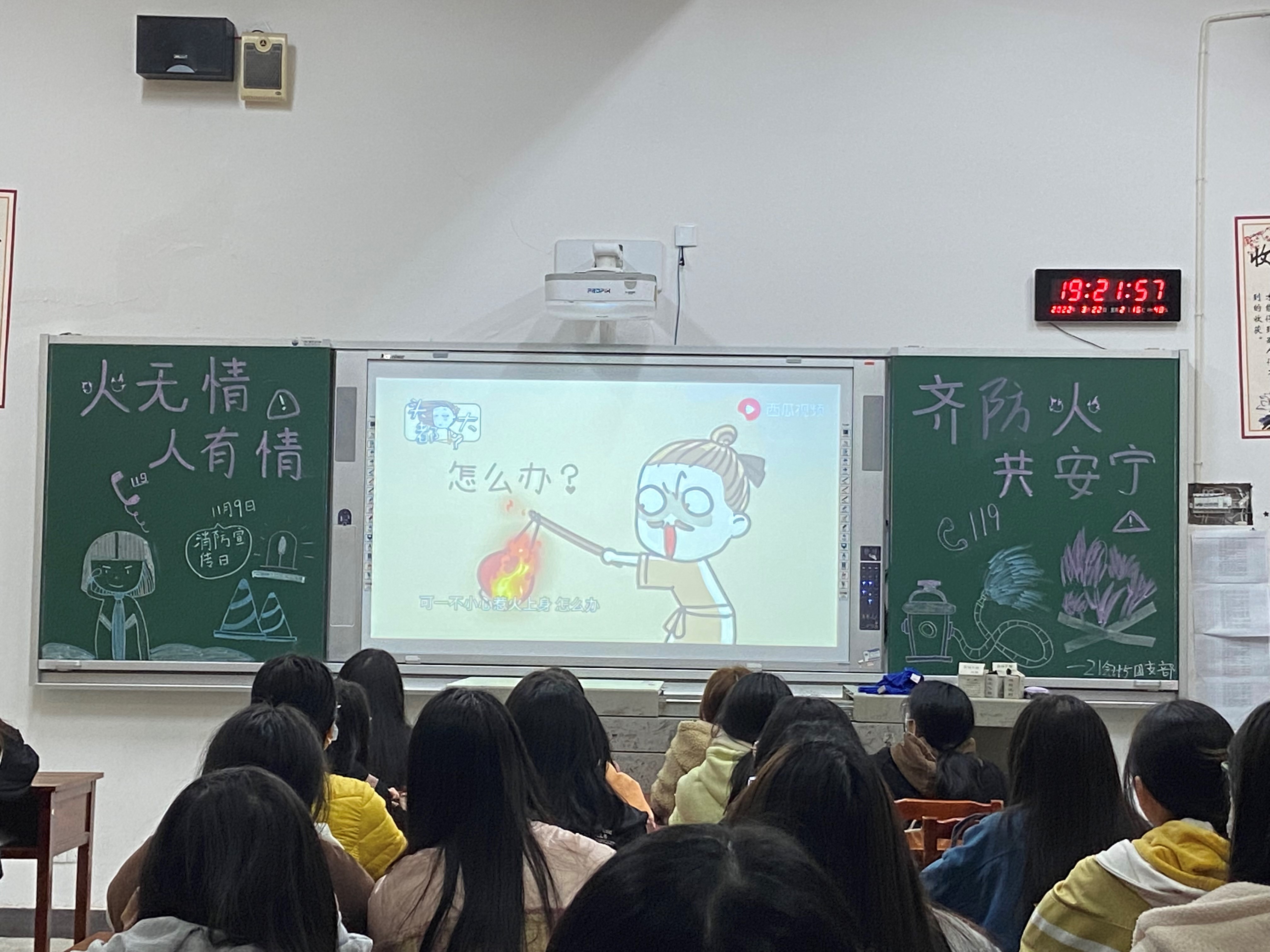 活动过程中,同学们纷纷讲述了自己身边发生过的火灾事例,在讨论中,进一步加强了同学们火灾防范意识?;疃詈?,主持人组织同学观看火灾自救技巧的短视频,更进一步帮助同学们了解火灾自救技巧。