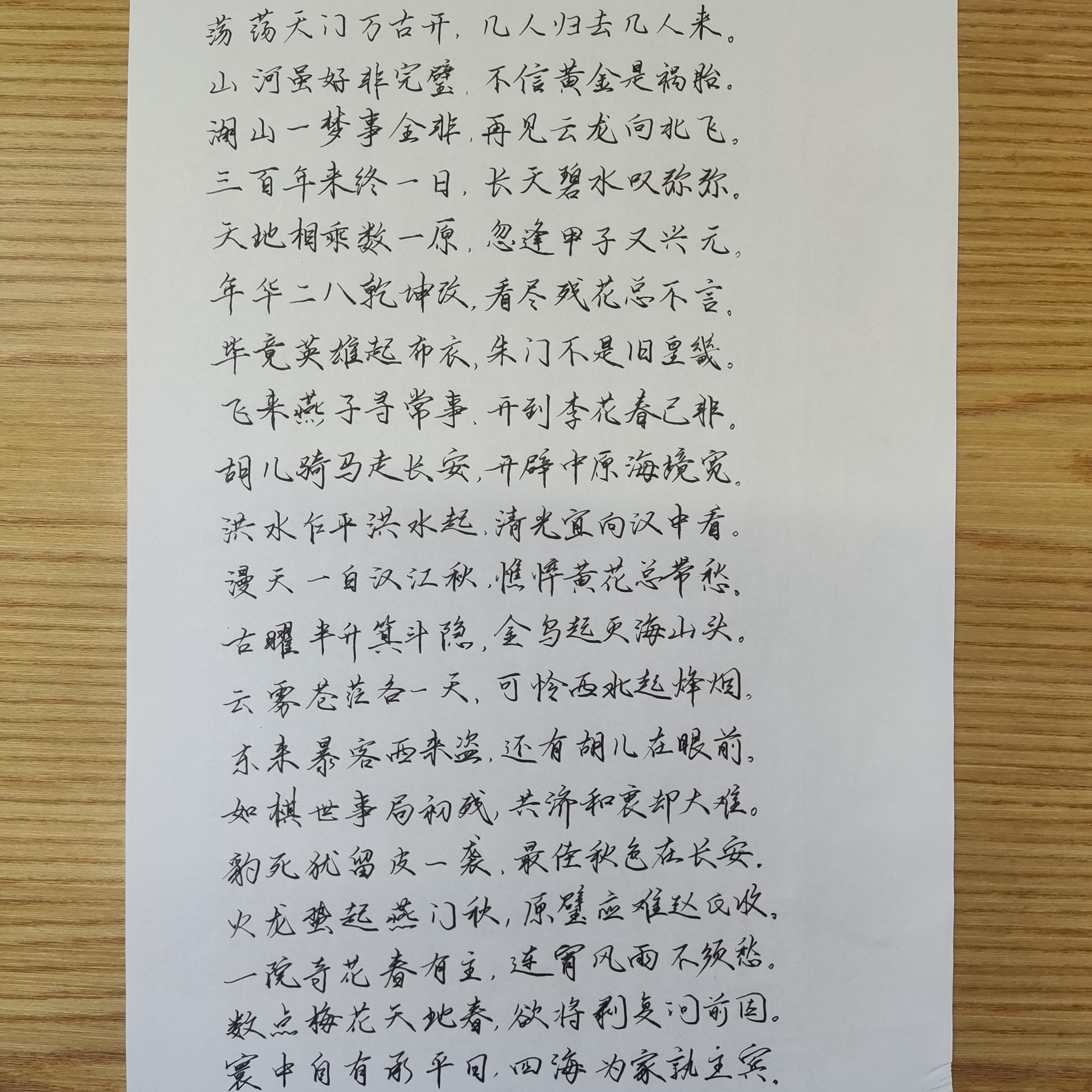 经过初赛的选拔,共有25位选手晋级决赛。12:50,选手们按照抽取的序号牌依次入座,主持人在宣读赛场秩序及比赛规则后,决赛正式开始。各选手手执钢笔书写,以“漫卷诗书喜欲狂”为主题,创作一首诗或写一段话。