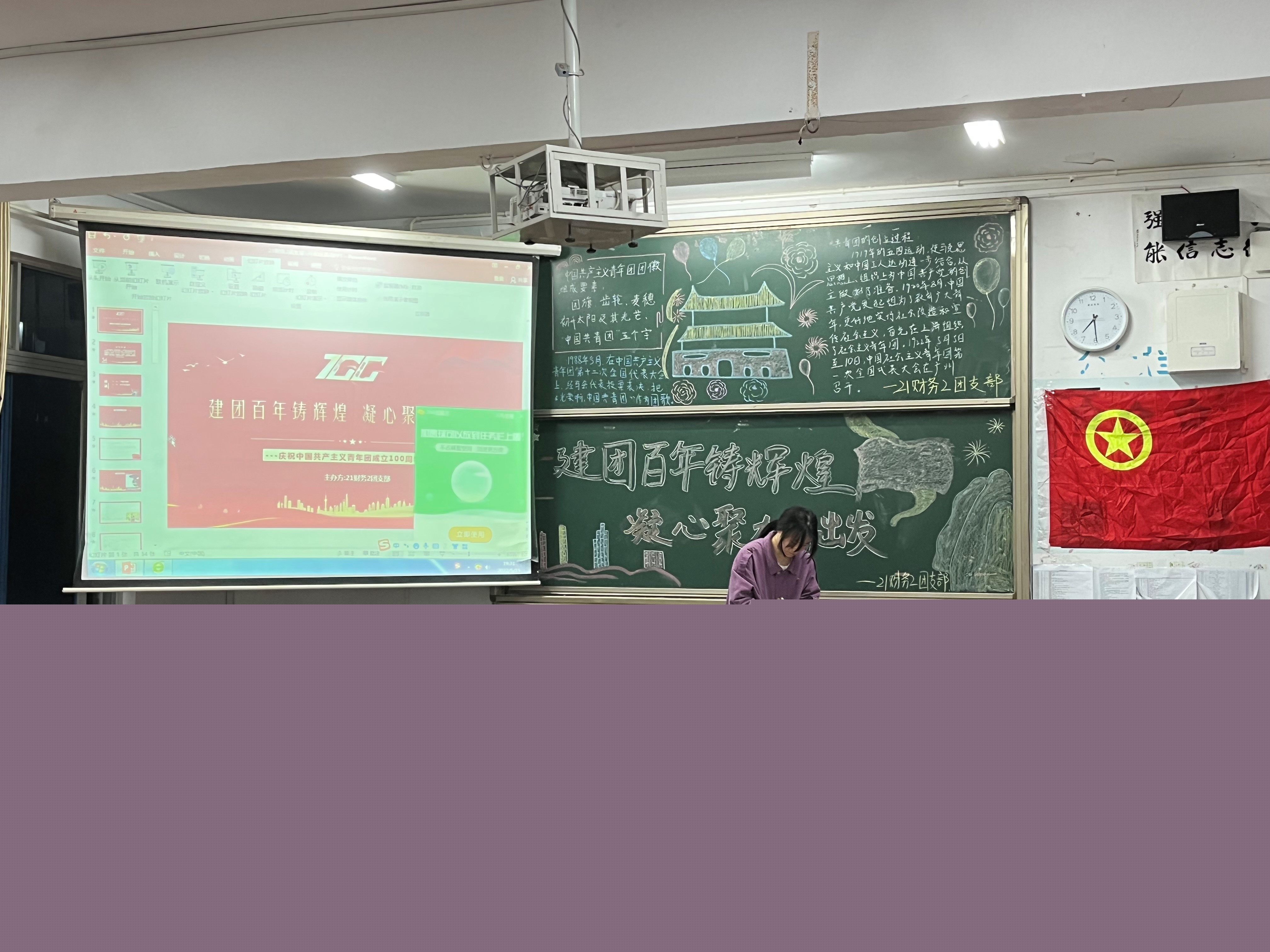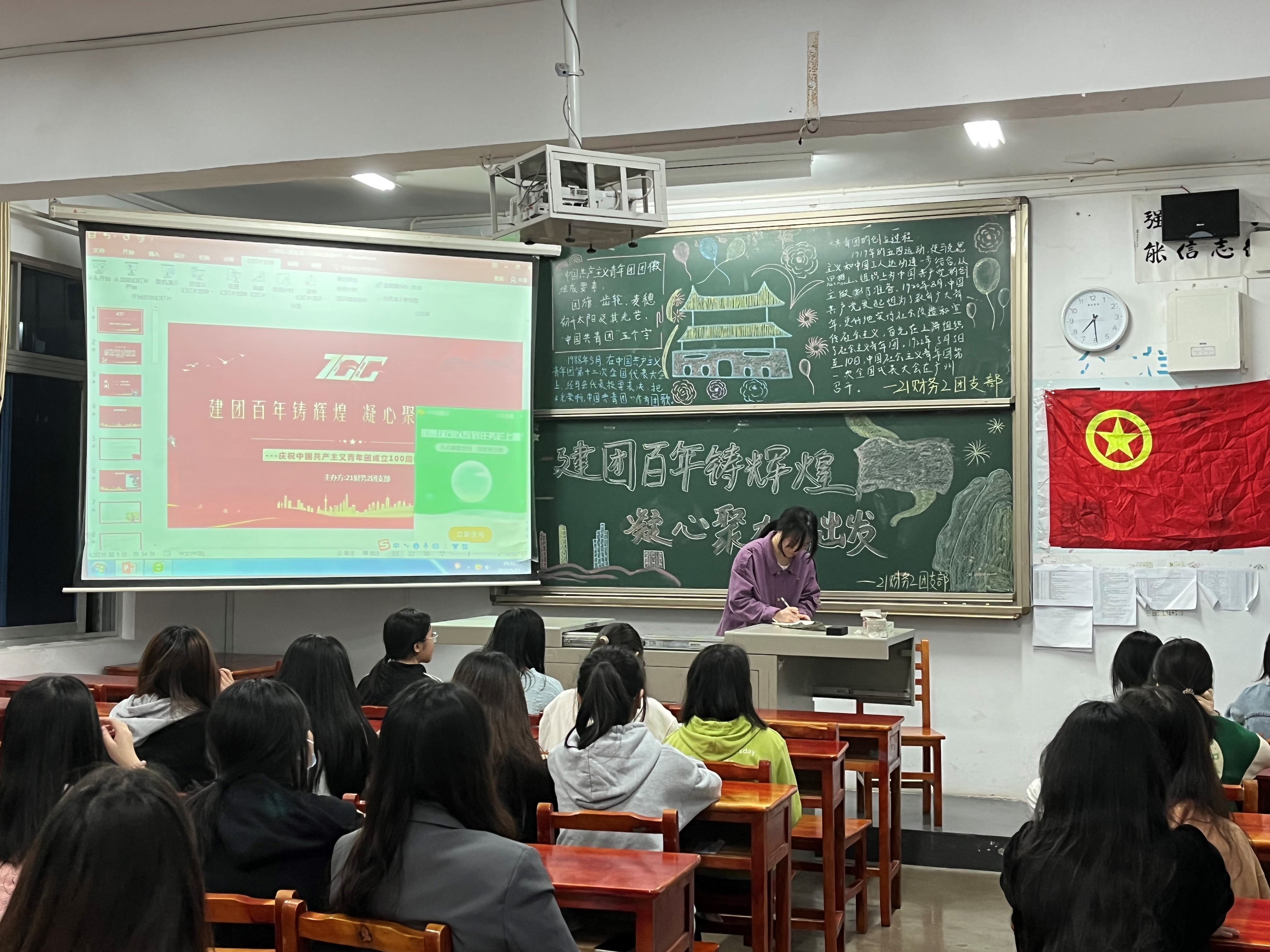 各班主持人通过播放视频、讲解ppt等多种形式向同学们展示了党团历史和百年精神,让同学们对党的性质、奋斗纲领和奋斗目标有了更全面的理解。在活动过程中,同学们踊跃参与讨论,积极发表自己的见解。面对国家未来的发展,我们不仅要有不忘初心、砥砺前行的决心,更要有为实现中华民族伟大复兴的中国梦努力奋斗的崇高理想。