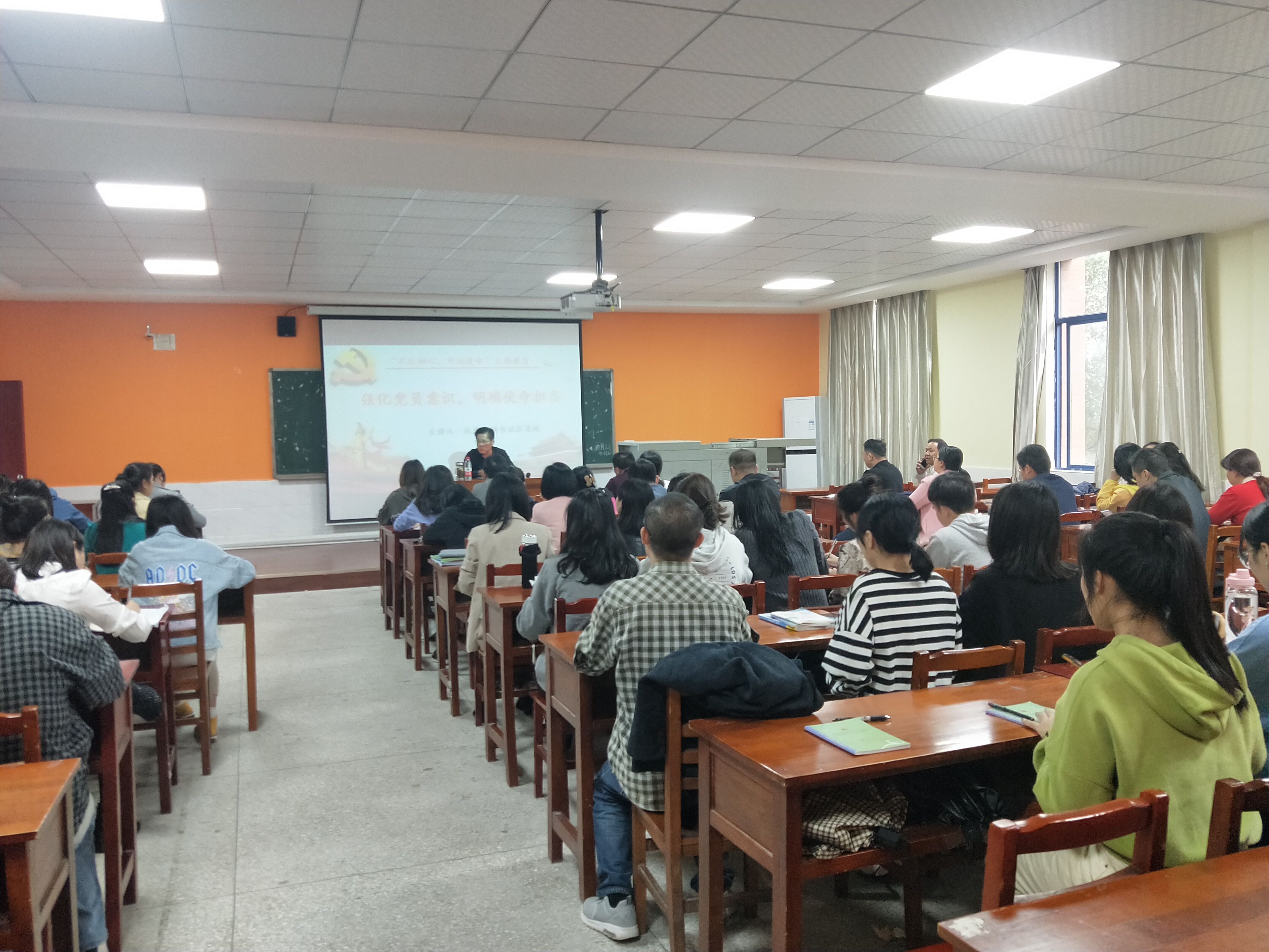 2019年10月22日下午14:00,旅游管理学院教工、学工党支部及机关二支部、机关六党支部于二教210由学校党委副书记吕逢铬同志为全体党员上了一堂“强化党员意识,明确使命担当”为主题的党课。