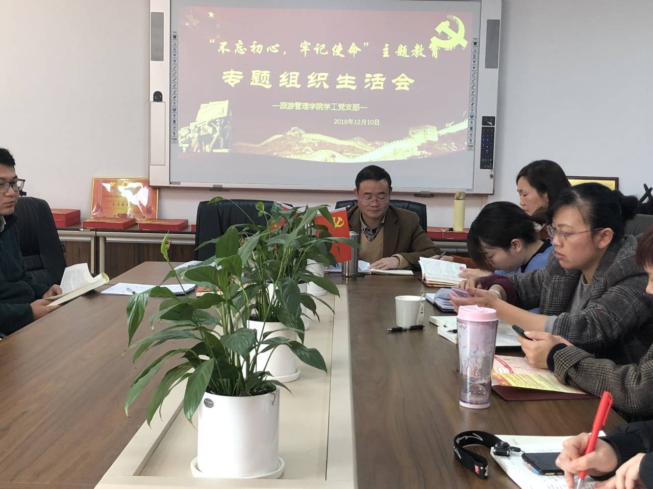 根据省委“不忘初心、牢记使命”主题教育领导小组《转发<关于第二批主题教育单位基层党组织召开专题组织生活会和开展民主评议党员的通知>的通知》(湘教组发〔2019〕26 号)要求和省委第十二巡回指导组《关于做好近段工作的几点提示》,以及学校关于基层党组织召开“不忘初心、牢记使命”专题组织生活会和开展民主评议党员的有关工作通知。根据这些上级党组织的要求,结合我支部的实际情况,我支部于2019年12月10日召开了旅游管理学院学生党支部组织生活会。