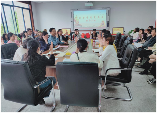 张丽萍书记首先代表上一届旅管学院党总支做工作报告,报告以改进作风、 凝心聚力为主题,紧紧围绕学校党建中心工作,回顾了党总支一年来工作取得的成绩及存在的不足,并希望新一届总支委员会团结一心、共同努力,争取党建工作做出典型示范。这一工作报告得到全体与会党员的赞同,全票通过。