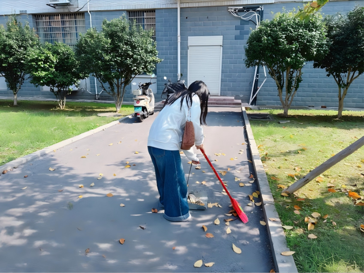 活动得到同学们积极响应。在有序组织下,志愿者们迅速集结,领取工具后分工协作,重点对教学楼走廊、操场周边灌木丛等公共区域进行全面清理。劳动过程中,大家展现出不怕脏、不怕累的实干精神:有的俯身细致清扫地面杂物,有的蹲身清理石阶缝隙中的纸屑,有的借助长杆网兜清理树梢悬挂的塑料袋。各环节配合默契,现场氛围热烈,成为校园中一道亮丽的风景线。
