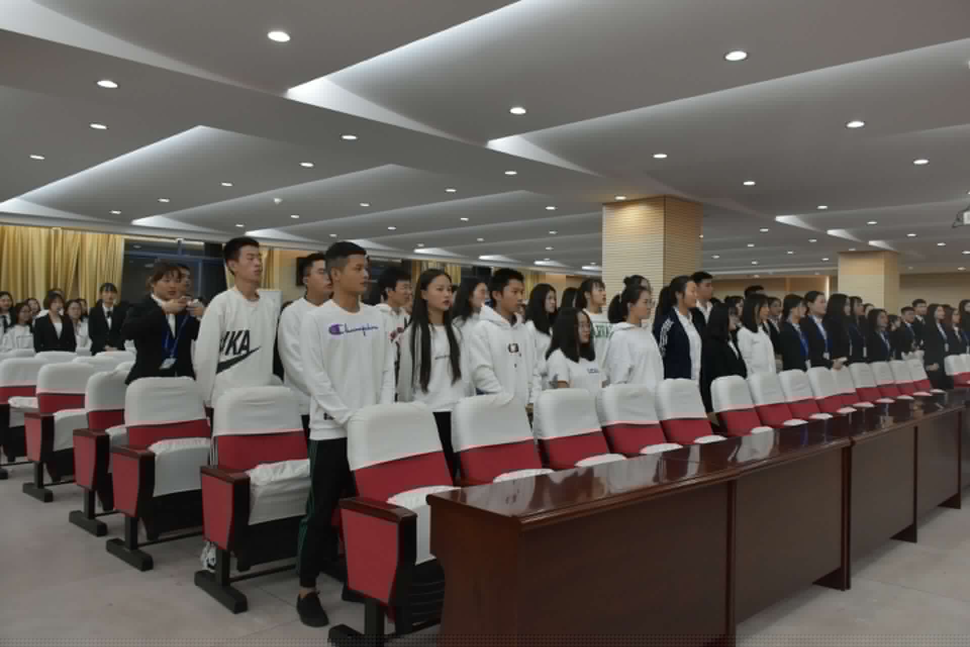 大会第一项全体起立奏唱团歌,随后,副书记罗芷伊首先介绍了本次换届大会的基本流程并邀请十四届团学分会副书记陈雅和主席贺红杏进行发言,在会议上她们强调:“我们要充分发挥团组织在学风建设,组织学生活动的日常工作中的作用,要结合实际,敢于实践,不断创新,健全各项规章制度,规范工作程序,使学生会运行机制更完善,要紧扣时代脉搏,推进校园文化建设,着力提升大学文化育人氛围”,并对往届学生会干部工作做了总结。