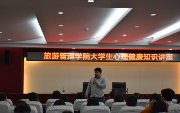 为帮助2020级新生更好地适应大学生活,提高他们的心理素质,增强情绪管理能力,旅游管理学院11月19日晚在办公楼6楼报告厅组织开展了以“关注大学生心理健康,培养理性平和的社会心态”为主题的心理健康知识讲座。