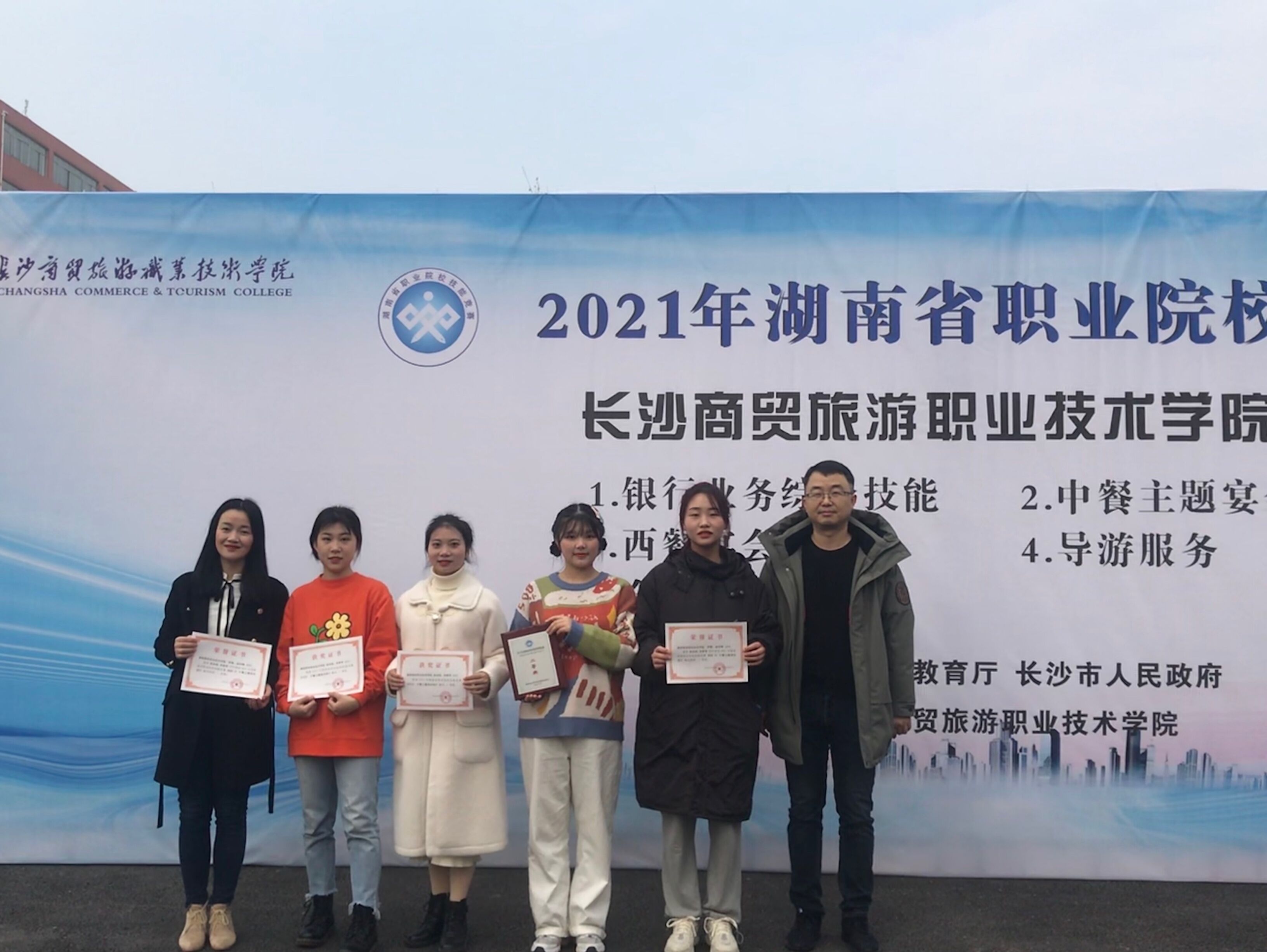 经过三天的层层选拔,在长沙商贸旅游职业技术学院举行的导游服务设计大赛中,由黄琦老师指导的我院18旅管3班的段文洁在赛场上发挥稳定,表现出色,荣获一等奖;由熊锦老师指导的19景管1班的王诗琦以认真严谨的态度面对整场比赛,荣获二等奖;由祖鹏老师指导的18旅管2班的杨菲沉着冷静、认真地完成每一项展示,喜获三等奖 。与此同时,在中餐主题宴会设计大赛中,由罗霞老师、赵科峰老师指导的李梦琴、张诗琪因独特的台面设计创意、规范的操作标准以及优雅的仪容仪表,被评为二等奖。在长沙民政职业技术学院举办的英语口语技能大赛中,18商英4班的吕紫芊凭着她一口流利清晰的英语口语,荣获二等奖。