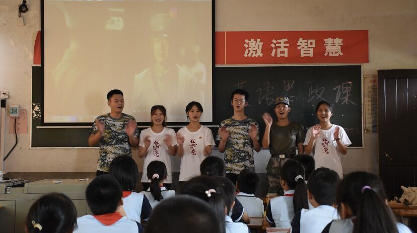 支教团队发挥旅管学院专业优势,以英语情景剧、党史知识抢答竞赛、学习军体拳、唱红歌等方式,给小学生们带来生动的英语思政课及红色导游小课堂,激发孩子们学习党史的兴趣,唤醒红色血液,树立爱国意识,为建立红色研学路线开拓新方向。