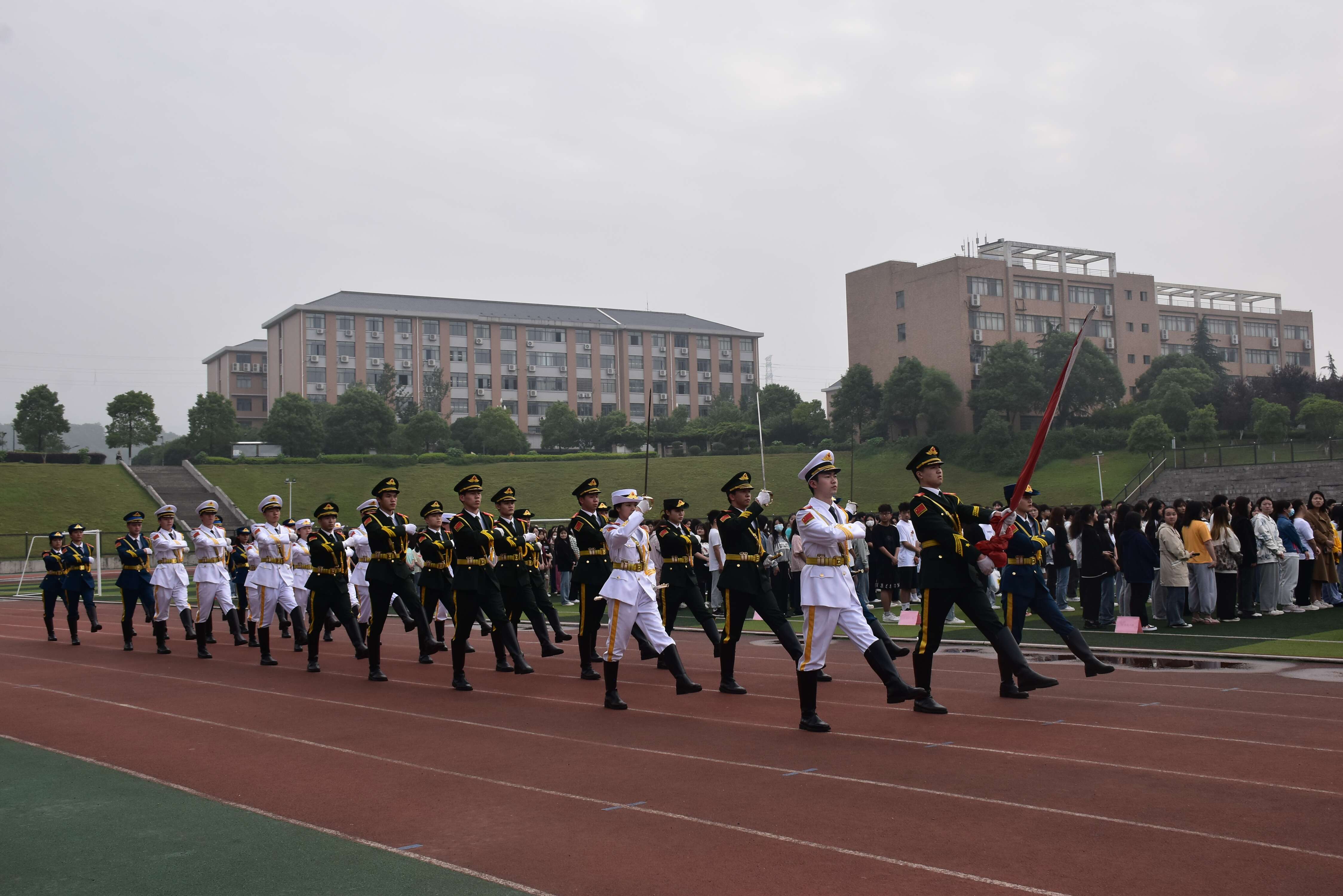 5月23日早上7点,旅游管理学院在田径场举行了本学期的第一次升旗仪式,参加此次升旗仪式的有我院党总支副书记欧阳序华、全体辅导员和全体学生。