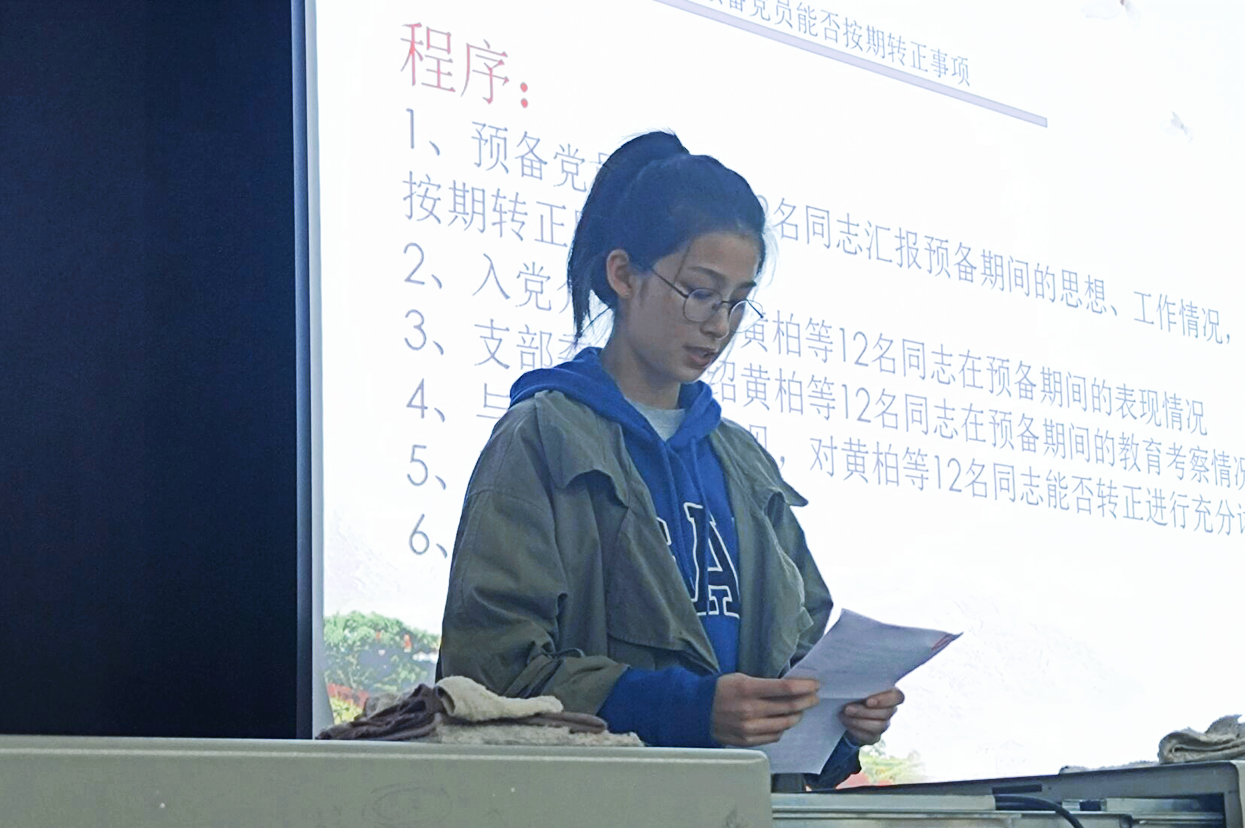 此次会议主要是讨论黄柏等十二名预备党员的转正问题。卢一慧同志宣布大会开始,由转正对象逐一汇报预备期间的思想、工作情况,经过一年的培养,预备党员都能够严格要求自己,积极参与党组织活动,认真学习各项政策,对党组织分配的工作都能够按时完成。所有预备党员汇报完自身情况后,在场的所有同志自愿对申请人进行评价,并寄予期望,希望每位预备党员在今后的工作、学习和生活中,都能以更高的标准、更饱满的热情严格要求自己,争先创优,在点滴中体现一名党员的先进性。在最后拥有表决权的党员对预备党员转正进行了投票表决,最终全体党员一致同意十二位同志成为正式中共党员。