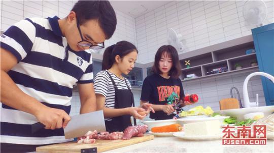 洗菜、切菜、烹饪……傍晚饭点,福州大学紫金矿业学院2017级学生张玉松正在福州大学共享厨房里与同学紧张地忙碌着。上个月,福建首家高??攀匠抗蚕聿吞诟V荽笱Э牛艿讲簧傺墓刈?。
