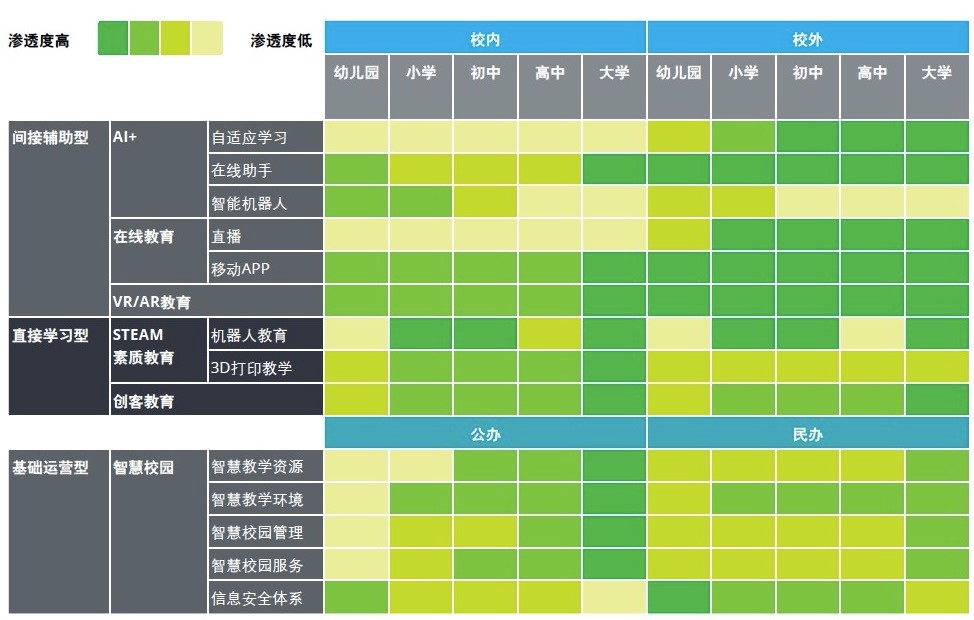 图:科技在教育领域的渗透,来源:2018德勤教育行业报告
