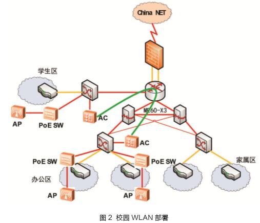 与传统有线网络对比,无线网络具有搭建快速、布线灵活等特点。建设无线网络系统不仅需要考虑当前校园用户需求,还要考虑学校长远发展需求。无线网络应满足用户随时随地访问网络的需求,更好地为学校教学、医疗和科研服务。