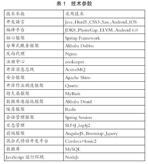 系统架构总体设计上应使用分层设计,尽量减少各应用层之间的依赖,并采用当前主流的分布式架构和介于web-app、native-app两者之间的新型混合式移动开发技术(hybird app),使程序兼具“native-app良好的用户体验”和“web app跨平台”。系统总体架构如图1所示。