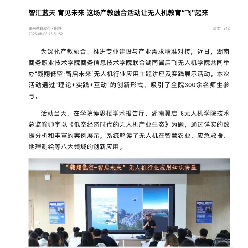 湖南教育发布报道——智汇蓝天 育见未来 这场产教融合活动让无人机教育“飞”起来