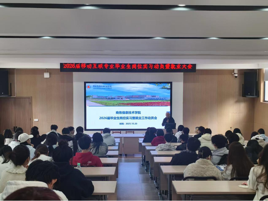 为助力2026届毕业生顺利实现从实习到就业的无缝衔接,明确实习任务、把握就业形势,2025 年 10 月 21 日至 22日,商务信息技术学院精心组织了毕业生岗位实习暨就业动员大会?;疃直鹪诔缋砺ズ筒┭ゾ傩校嫦?023级多个专业班级分批次开展专项指导。二级学院行政班子成员、全体辅导员及专任教师共同参会。动员会从岗位实习任务、实习要求、就业形势与能力提升等维度,为毕业生呈上一场干货满满的职场“启航指南”。