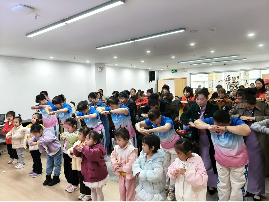 文艺汇演节目精彩纷呈、亮点十足。社区广场舞队的阿姨们身着靓丽服饰,伴随着欢快的旋律翩翩起舞,展现出蓬勃向上的精神风貌;来自辖区幼儿园的小朋友们带来了童真童趣的表演,稚嫩的歌声、可爱的舞姿萌化了在场所有人,传递着最纯粹的敬老之情??睦侄友葑嗟木淝俊赌裂蚯肺夏昱笥衙撬蜕衔屡8!5薄吨谢⒅谢⒌馈返男上炱?,老人、孩子和志愿者们伸出双手,掌心相对,以指尖传递温情。这温暖的一幕瞬间点燃全场,将汇演气氛推至顶点,也让“孝”的文化内涵在人们真挚动人的笑容中得到完美诠释。