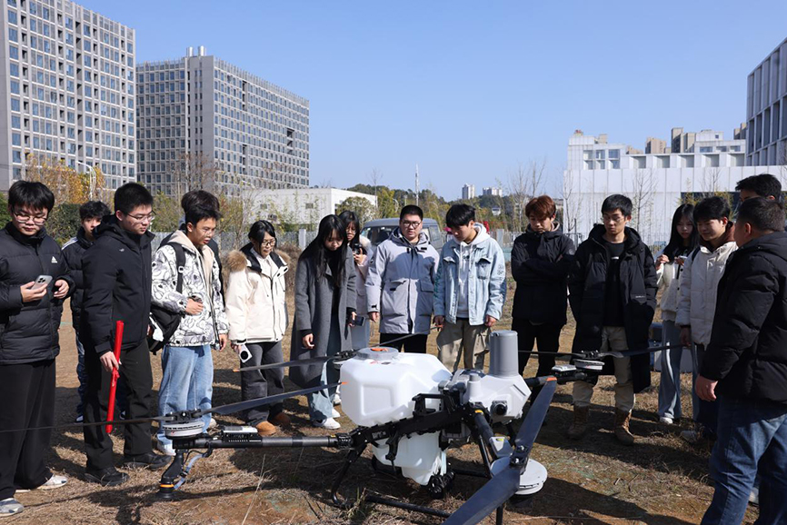 实训室的高标准建设,既在校内为学生筑牢与企业实战同轨的技能基础,又为学生走进企业一线开展实战体验搭建了高效衔接的桥梁。无人机应用技术专业将“学生入企体验实战”作为三维联动机制的重要实践环节。近日,该专业全体学生前往大疆行业应用授权合作伙伴——中电金骏集团开展实地研学活动,学生近距离接触大疆系列多类型无人机,并前往企业户外训练基地,在技术人员指导下实际操作大疆T100S农业植?;信缛髯饕?、操控大疆M307无人机开展航拍测绘,并体验CAAC无人机驾驶员考证模拟场景,让学生在真实的企业环境中锤炼技能、明确方向。