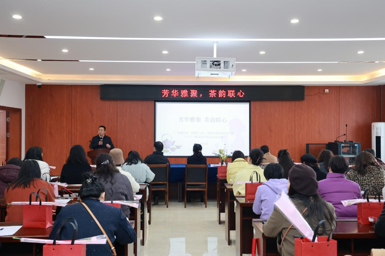 为庆祝“三八”国际妇女节,凝聚巾帼力量、共促教育强省建设,3月6日上午,由湖南省教育科学研究院组织、湖南商务职业技术学院茶学院协办的“芳华雅聚 茶韵联心”协同交流活动圆满落幕。活动特邀省教育工会参与指导,省教科院、省教育工会、湖南商务职业技术学院三家单位的女职工代表及部分男职工代表欢聚一堂,以茶为媒搭建协同交流平台,共叙情谊、共话发展、共绘教育高质量发展蓝图。