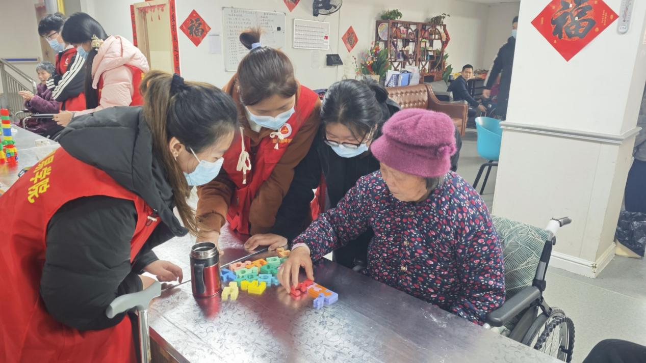 活动中,志愿者们精心筹备了文艺表演,悠扬的歌声与爽朗的笑语在康养中心的厅堂里萦绕回荡;互动游戏环节,同学们与老人们配合默契,欢声笑语间不时击掌相庆。现场没有刻意的煽情,唯有最自然的陪伴——有人半蹲在老人身侧细细讲解游戏规则,有人轻轻牵起老人的手并肩参与,青春的蓬勃活力与岁月的温润沉静,在此刻悄然相融、暖意满盈。