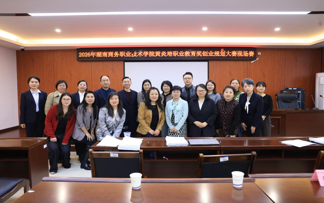 2026年4月7日下午,湖南商务职业技术学院2026年黄炎培职业教育奖创业规划大赛高职教师赛道校内选拔赛顺利举办。本次校赛是我校专创融合教学成果的集中展示,也是备战省级赛事、选拔优秀师资与优质课程的重要平台。学校副校长彭铁光、副校长禹明华莅临现场观赛指导,创业书院组织承办本次赛事。