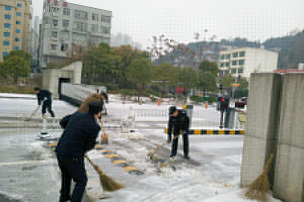 26日早上八点,学院保卫处的同志们积极行动起来,开展全院扫雪行动,清扫主干道路、校门口和公共场所内的积雪,美化校园,方便出行,传递正能量,弘扬“商务精神”。