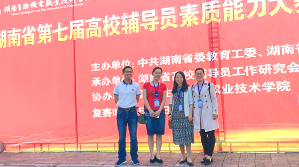 2018年5月9日,由中共湖南省委教育工委、湖南省教育厅主办的湖南省第七届高校辅导员素质职业能力大赛(高职高专组)复赛在湖南生物机电职业技术学院举行。冯湘、汤艺峰、李海燕三位辅导员代表学院参赛,三位选手沉着应战,最终凭着扎实的理论功底、过硬的职业能力,从全省66支参加比赛的高职高专院校代表队中脱颖而出,以团体总分第一的优异成绩,成功进入决赛。