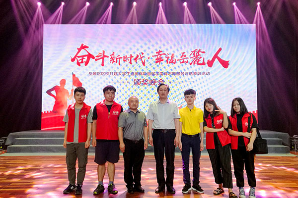 我院16级电信1班周宇航同学(右三)获得了岳麓区区校共建大学生道德高地首届学雷锋志愿服务“优秀志愿者”荣誉称号