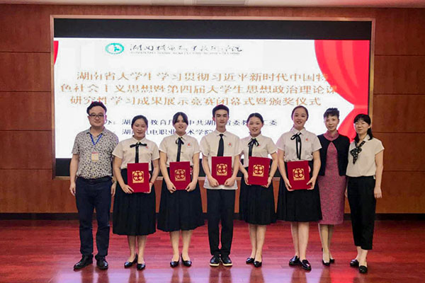 在5月27日结束的湖南省大学生学习贯彻习近平新时代中国特色社会主义思想暨第四届大学生思想政治理论课研究性学习成果展示竞赛决赛中,由思政课部邓艳君、高莉和肖彬老师指导的研究性学习小组——17市营1班何江瑶、肖剑、曾睿琪、黄琳欢、易凤琴,以作品《习近平知青岁月对大学生成长成才的启示研究》,获得高职高专组一等奖第一名。