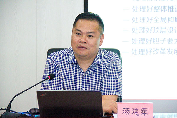 湖南省社联副主席、湖南省情研究会会长汤建军研究员做“以改革创新精神书写时代画卷”主题讲话