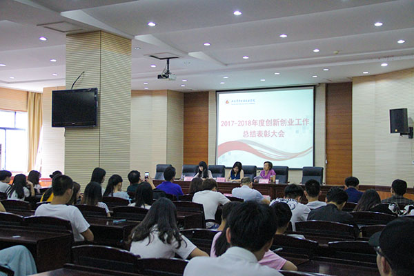 为了进一步激发同学们双创热情,促进学院双创工作。 5月29日下午3:00我院于办公楼学术报告厅举行创新创业年度(2017.5-2018.5)总结表彰大会。出席此次大会的有党委委员禹明华、创新创业学院院长陶炎焱、院团委书记杨明及各二级学院领导,会议由招生就业处副处长张庆主持。